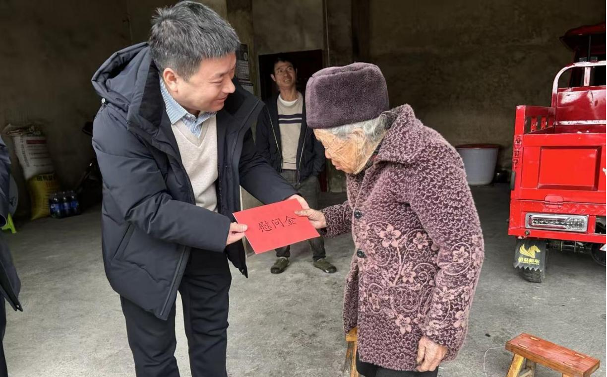 【图为集团党委书记、董事长陈俊慰问达勒村王应珍老人】